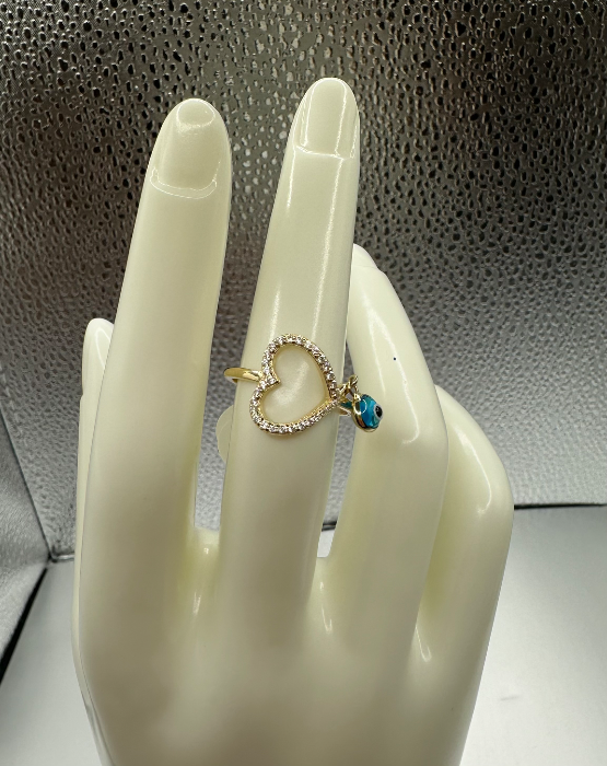 Heart Ring with Stones and Blue Eye (Anillo de Corazón con Piedras y ojo Azul 97 quantity
